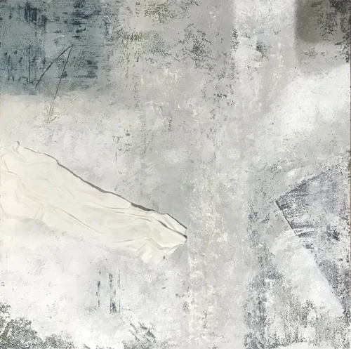 Oil and cold wax, slip-cast porcelain on panel, 18” x 18”, 2020