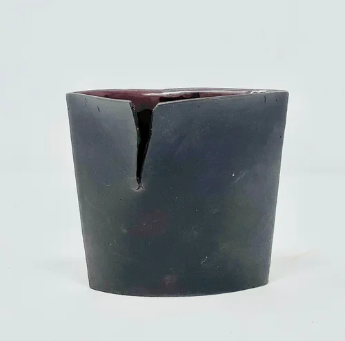 Slipcast black porcelain, cranberry interior glaze, 4.25 x 4.75 x 2.25”, 2020